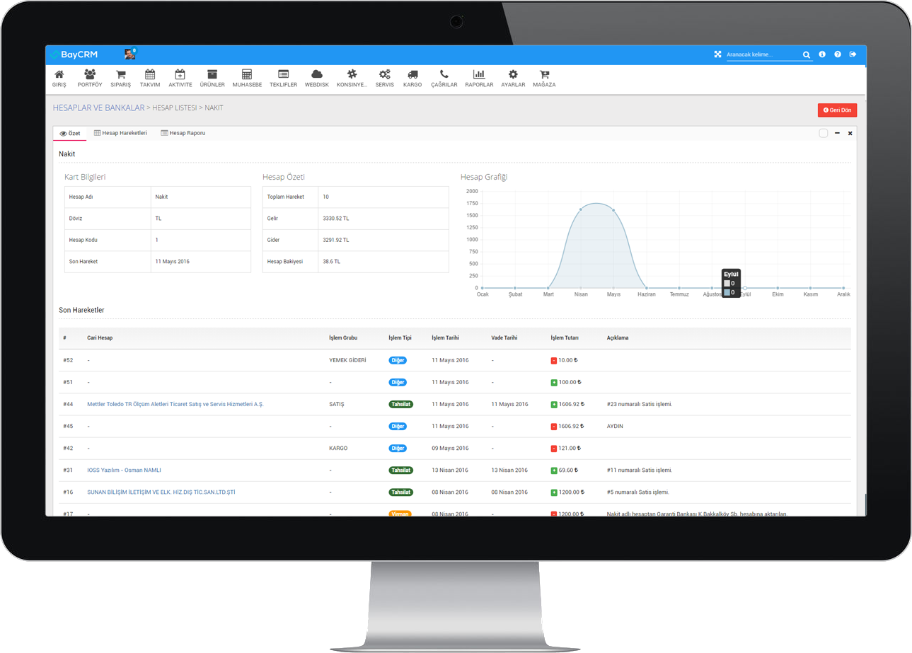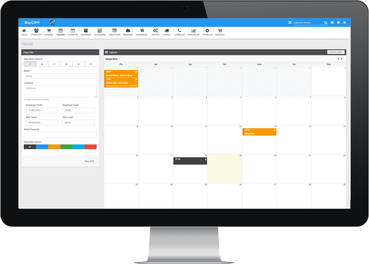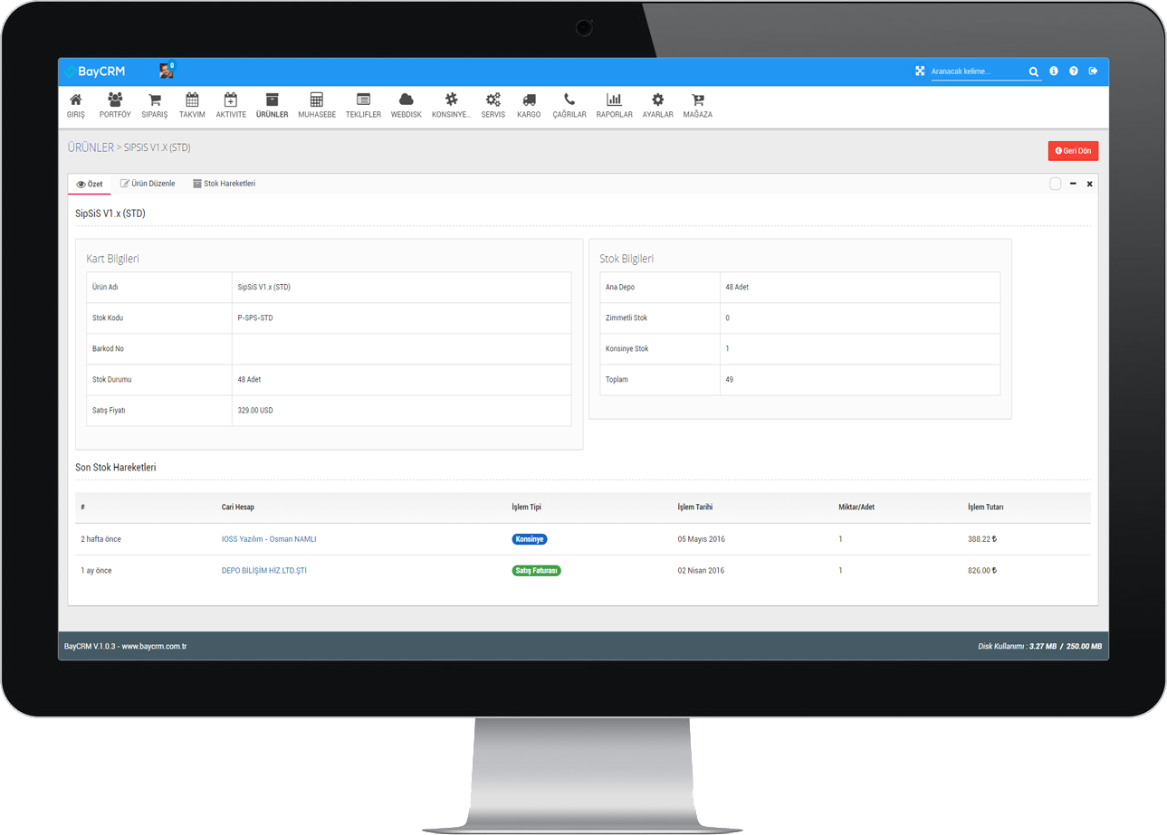 BayCRM müşteri ilişkileri yönetiminin yanı sıra bir işletmenin ihtiyaç duyabileceği teklif yönetimi, cari takip yönetimi, alış/satış faturası işlemleri, çek işlemleri ve daha bir çok özelliği içerisinde barındırır.